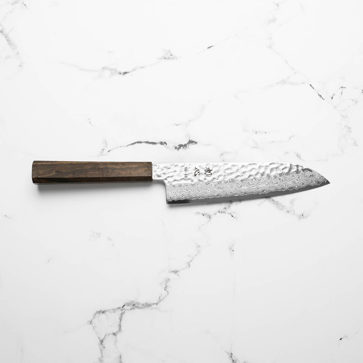 Hatsukokoro Hayabusa VG10 Damascus Tsuchime Santoku 165mm