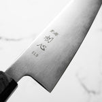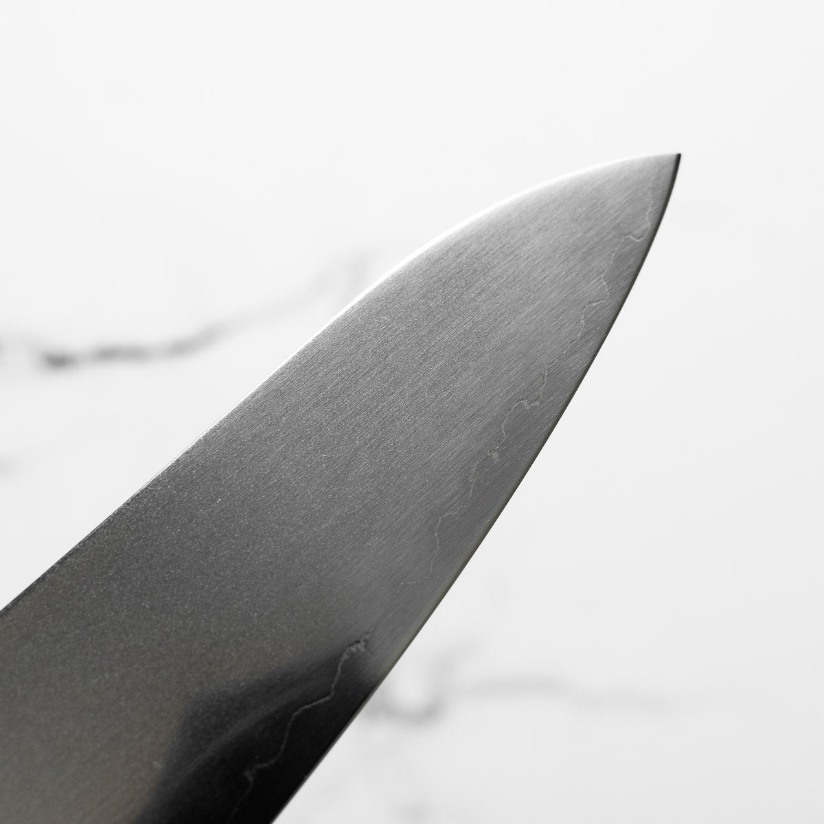 Japanese SLD steel is a semi-stainless steel crafted through advanced metallurgy. It is used often in Sanjo knives, has a non-chippy edge and is extremely tough. This high-carbon steel, enriched with chromium and molybdenum, offers excellent performance, but be mindful not to leave it wet for extended periods.