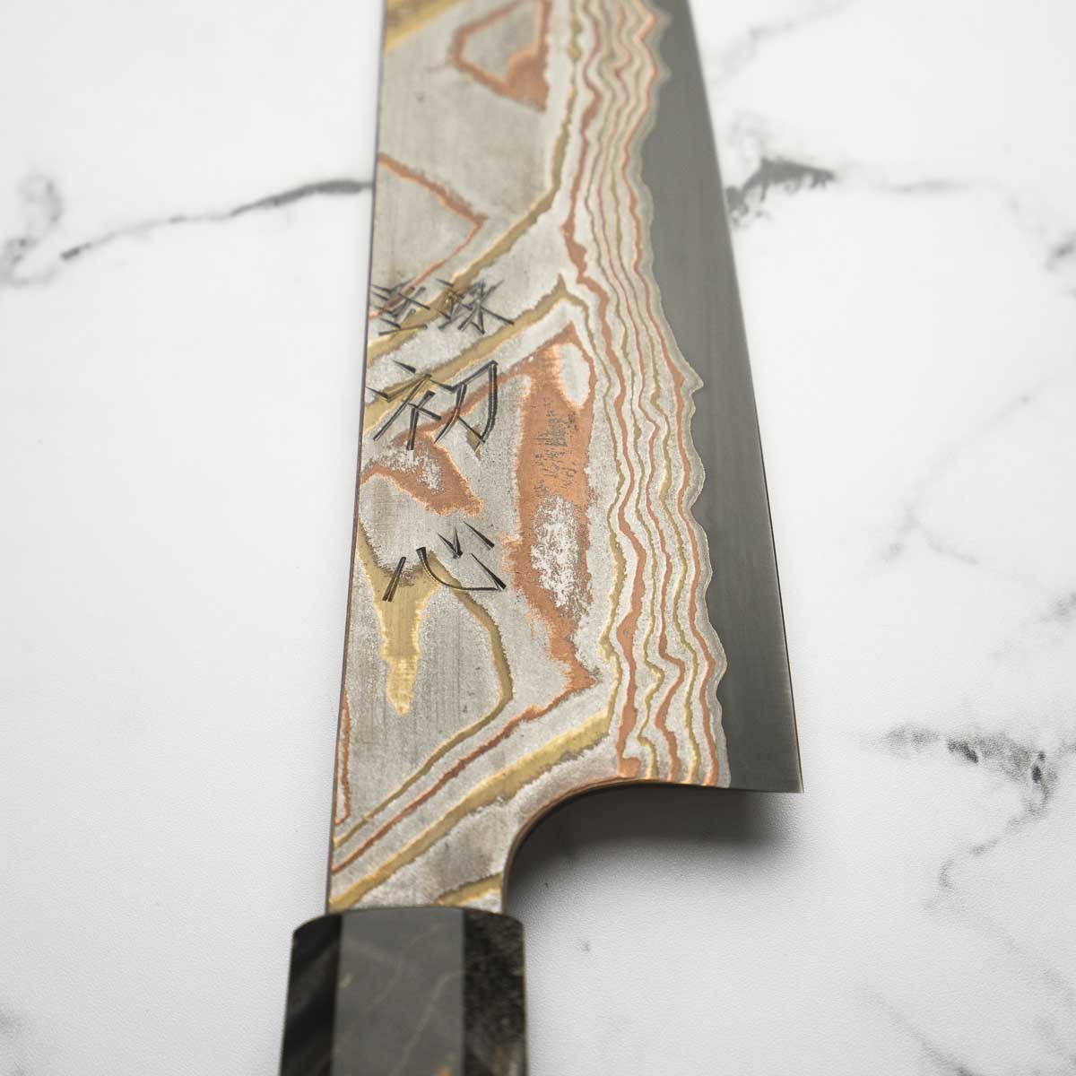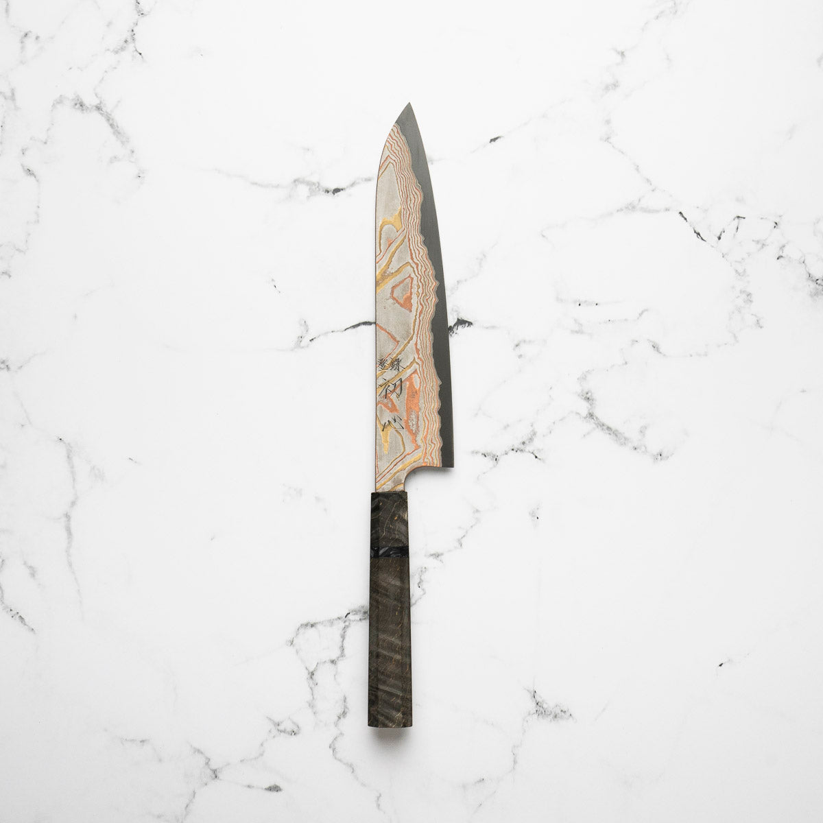 Hatsukokoro Irodori Blue 2 Rainbow Damascus Gyuto 240mm - Dark Maple
