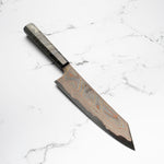 The Kiritsuke knife, a symbol of expertise in Japanese cuisine, is traditionally used by executive chefs. This multi-purpose knife combines features of a slicer and a vegetable knife, with its angled tip and long blade. It excels in precise slicing, chopping, and julienning, making it a prestigious and versatile tool.