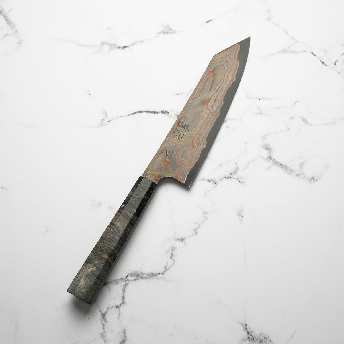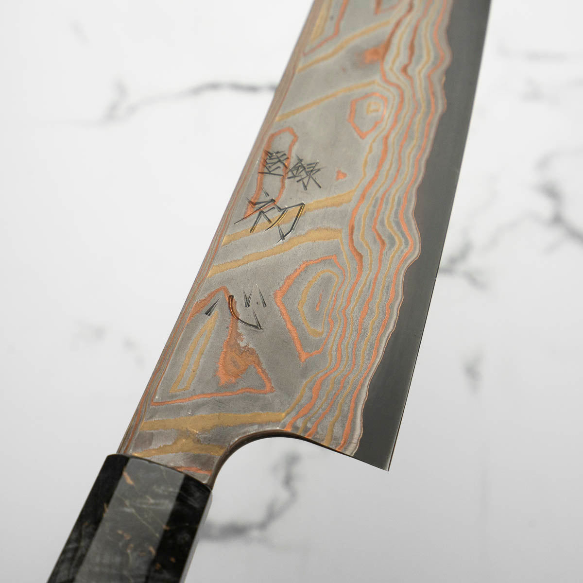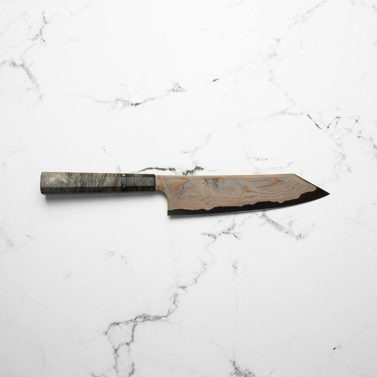 Hatsukokoro Irodori Blue 2 Rainbow Damascus Kiritsuke Gyuto 210mm - Dark Maple