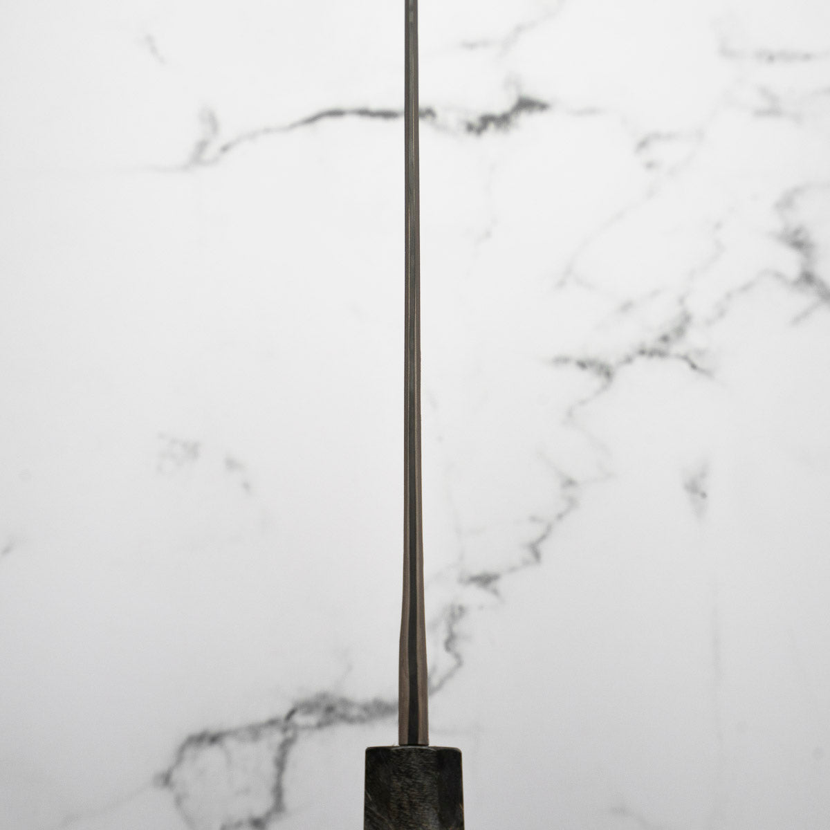 Japanese Blue Steel #2, or "Aogami" #2, is a revered high-carbon steel alloyed with low amounts of chromium and tungsten. It strikes an excellent balance between durability, edge retention, and ease of sharpening. Slightly more ductile than Blue #1, it's widely used in crafting traditional Japanese knives, beloved by chefs for its resilience and sharpness, albeit is slightly softer than Blue 1.