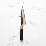 The Honesuki is the single or double bevel knife for breaking down poultry. Its thick blade and angled tip allow for heavy duty tasks and also precise work.