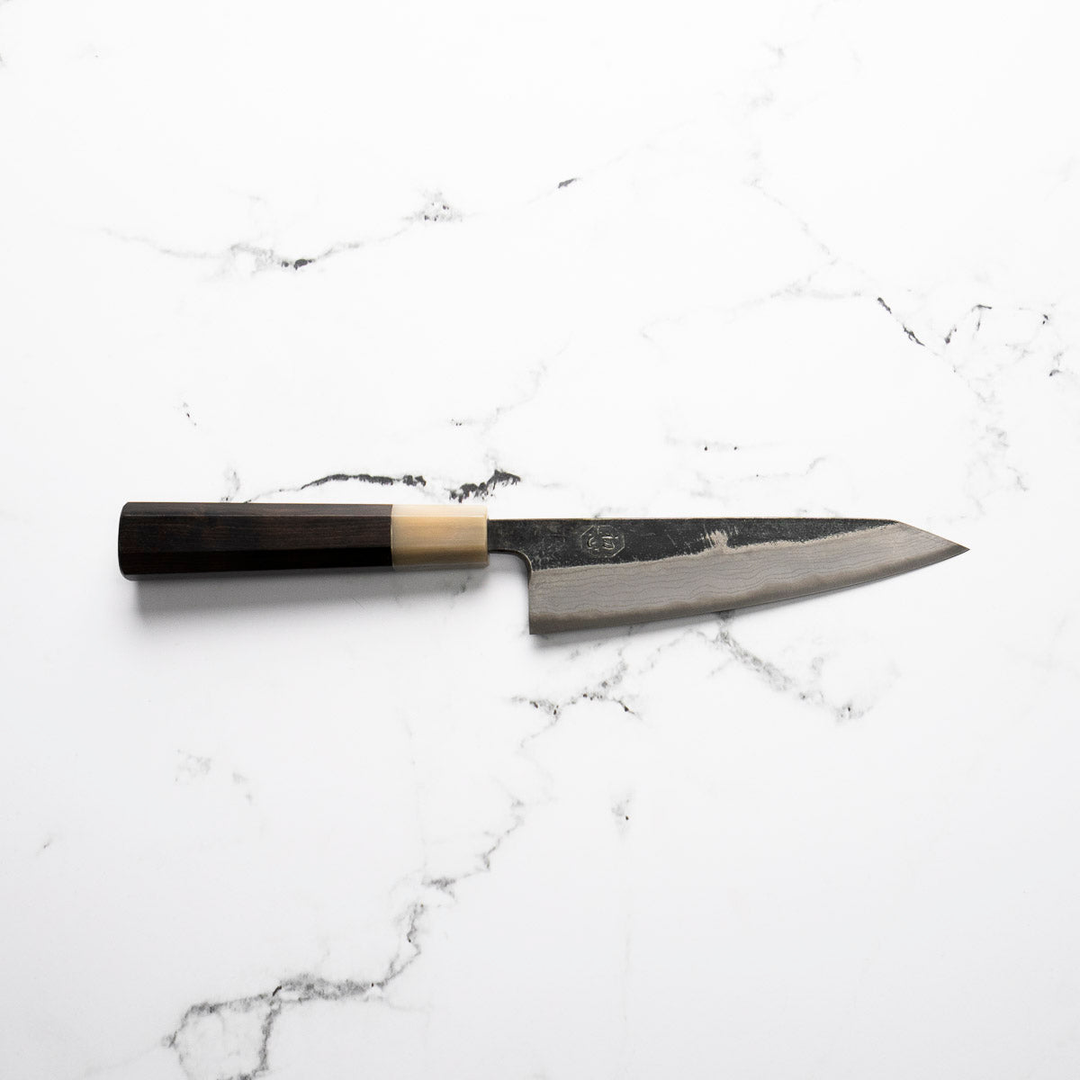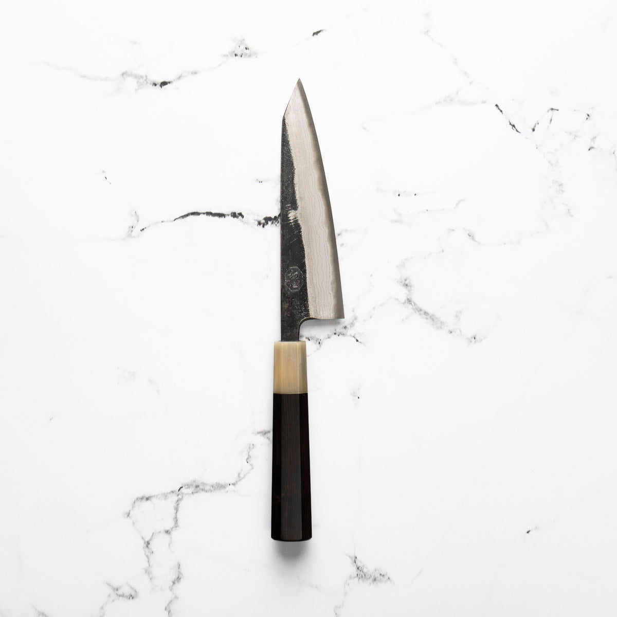 Hatsukokoro Kumokage Blue 2 Kurouchi Damascus Honesuki 150mm - Ebony & Blonde
