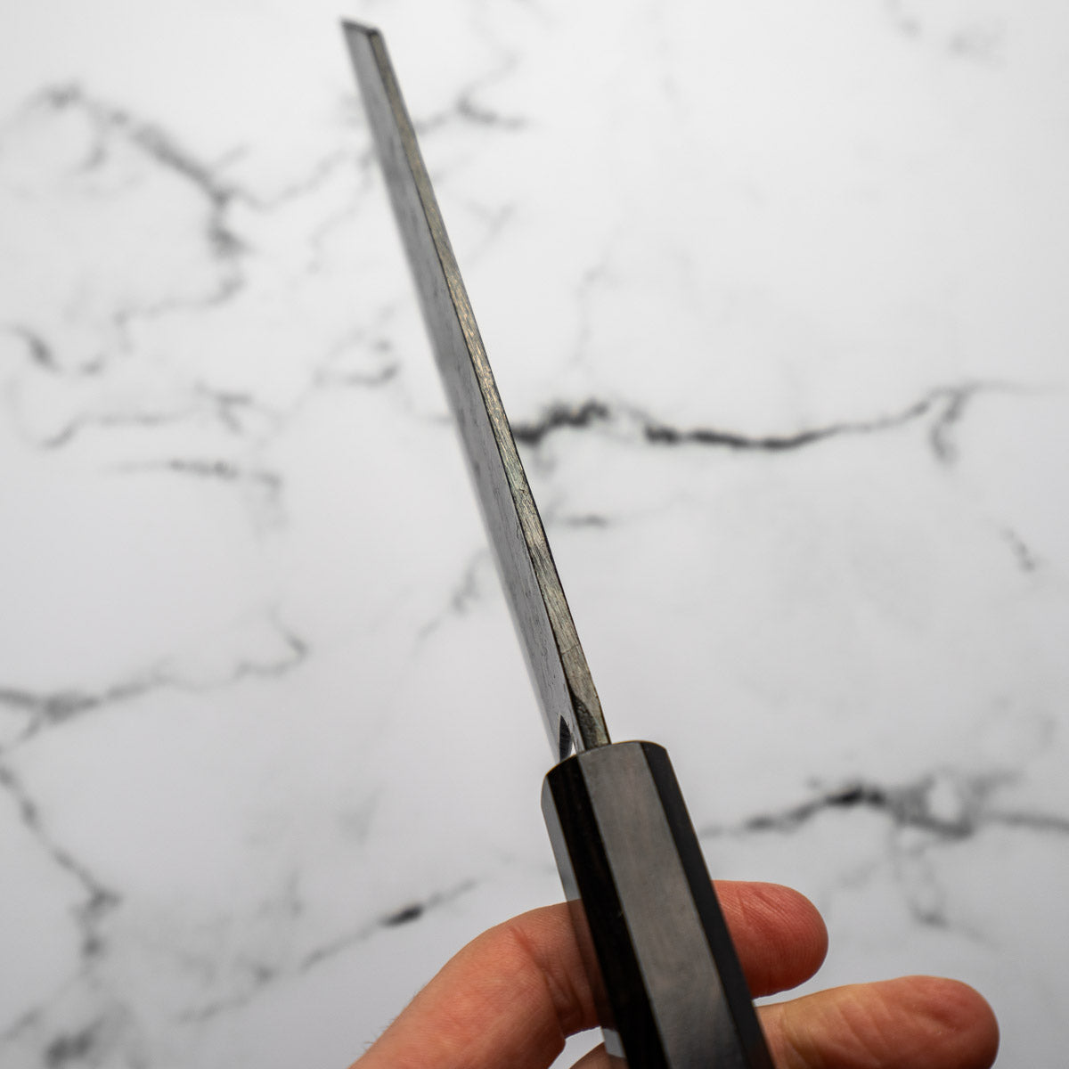 Japanese Blue Steel #2, or "Aogami" #2, is a revered high-carbon steel alloyed with low amounts of chromium and tungsten. It strikes an excellent balance between durability, edge retention, and ease of sharpening. Slightly more ductile than Blue #1, it's widely used in crafting traditional Japanese knives, beloved by chefs for its resilience and sharpness, albeit is slightly softer than Blue 1.