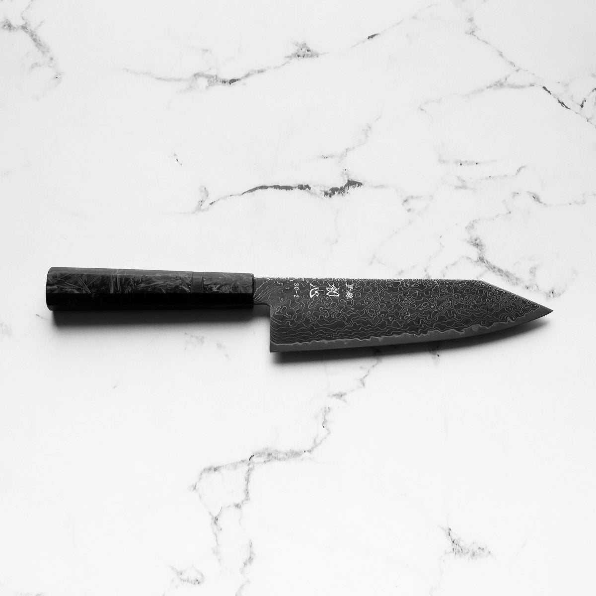 Hatsukokoro Ryuhyo Kurozome SG2 Damascus Bunka 180mm - Dark Carbon Fibre