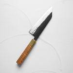 The Bunka knife, a versatile and traditional Japanese kitchen tool, features a distinctive, angular tip and a wide blade. It's designed for precision tasks like slicing, dicing, and chopping. Ideal for handling vegetables, meat, and fish, the Bunka is a multifunctional knife celebrated for its utility and unique aesthetic.