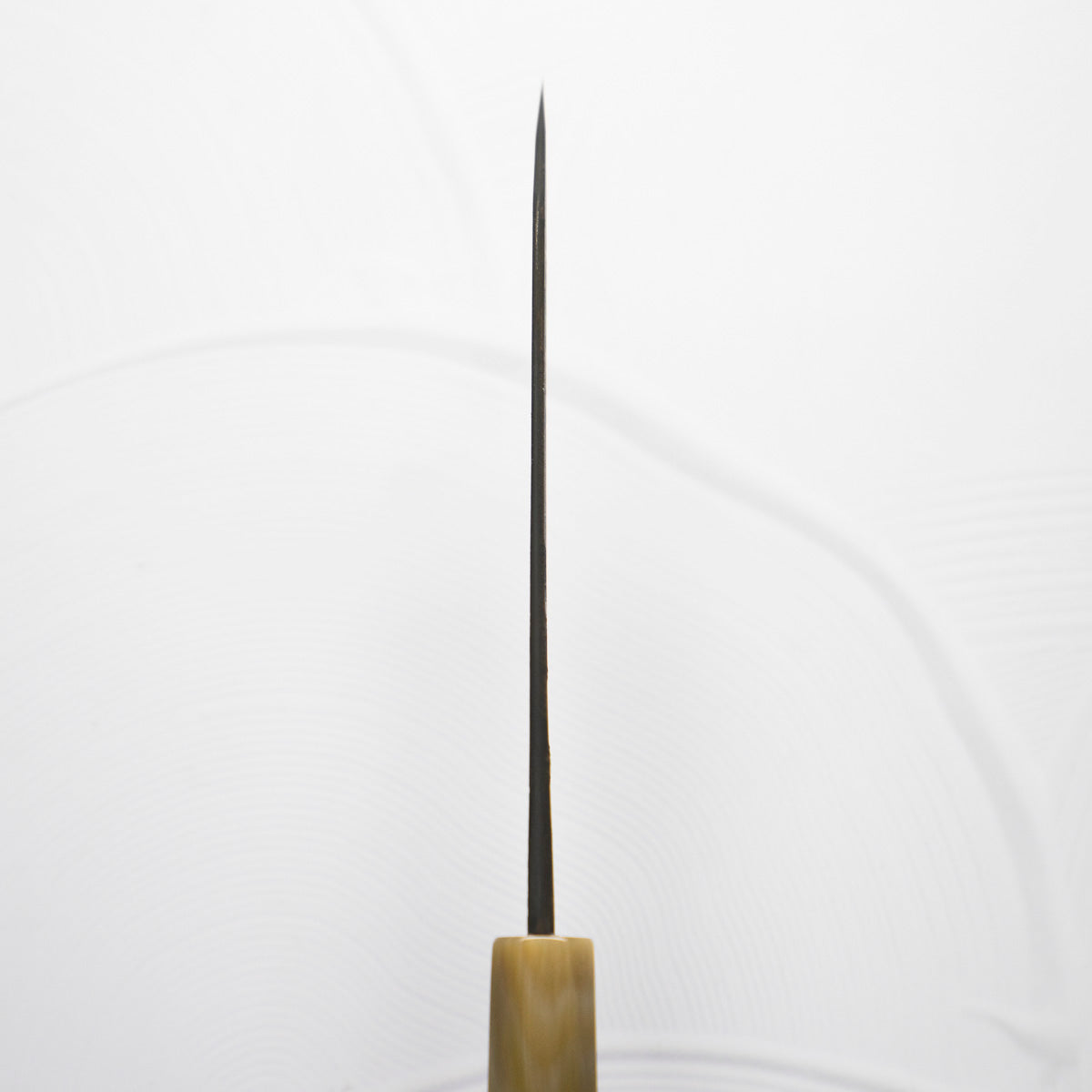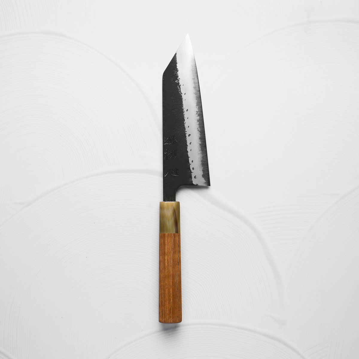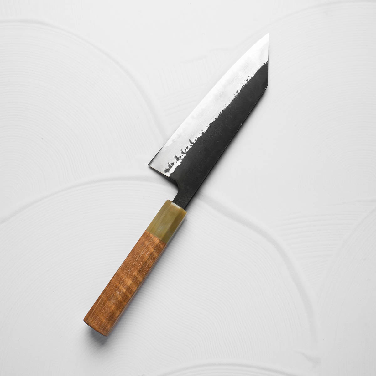 This knife is made from a high-carbon steel and as such, will require a little more care than a regular off-the-shelf knife. It must be dried shortly after use, as prolonged exposure to moisture can cause rust spots to appear. A very light coat of oil during storage also helps to prevent rust spots. A patina (colouration and seasoning of the steel) will occur with use.