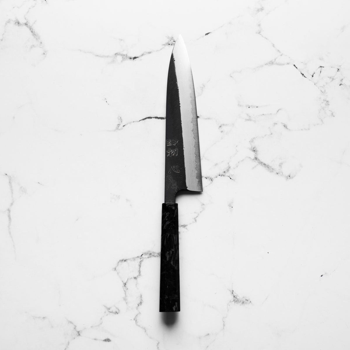 Hatsukokoro Shinkiro Blue Super Damascus Kurouchi Gyuto 210mm - Dark Carbon Fibre