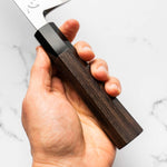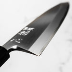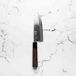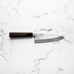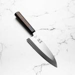 The Deba knife, deeply rooted in Japanese culinary tradition, is a robust, single-bevel knife (sometimes double) primarily designed for fileting fish. Its thick, heavy blade effortlessly glides through fish bones and joints, while preserving delicate flesh. Ideal for seafood preparation, the Deba is a staple in Japanese kitchens for its precision and strength.