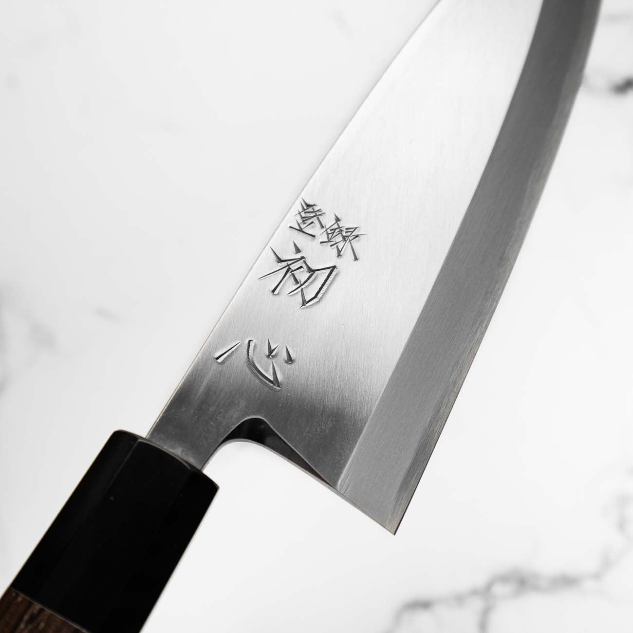 Japanese White Steel #2, a traditional high-carbon steel, is cherished for its purity and fine grain structure, enabling razor-sharp edges, at the cost of being reactive. It is one of the easiest steels to sharpen, but cannot be left wet for even short periods otherwise rust spots can occur. If you’re fastidious in your knife maintenance, this knife can steel can be extremely rewarding to use.