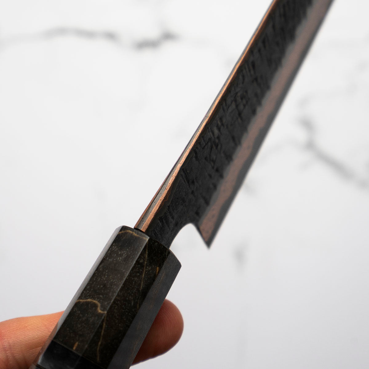 Hatsukokoro Yorokobi Kurouchi SLD Damascus Tsuchime Bunka 180mm - Dark Maple