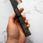 The Bunka knife, a versatile and traditional Japanese kitchen tool, features a distinctive, angular tip and a wide blade. It's designed for precision tasks like slicing, dicing, and chopping. Ideal for handling vegetables, meat, and fish, the Bunka is a multifunctional knife celebrated for its utility and unique aesthetic.