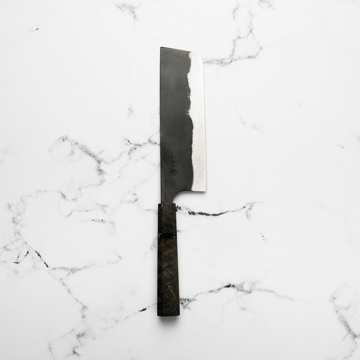 Shirogami Carbon Steel Core + Soft Iron Kurouchi Clad