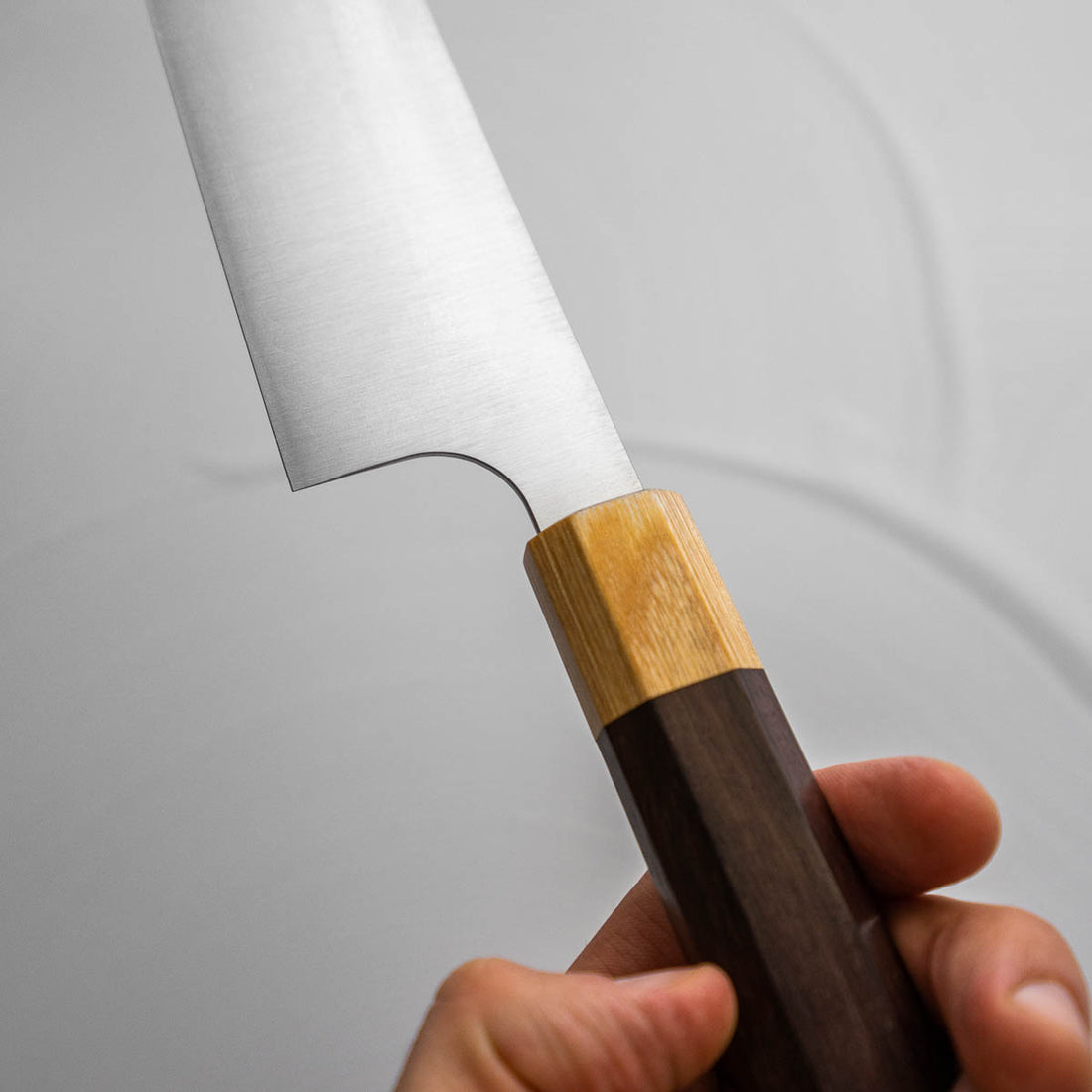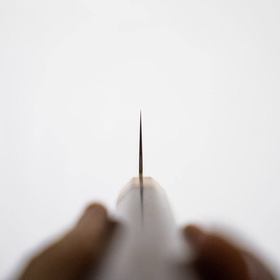 After sharpening many knives for some of the top Japanese Blacksmiths, Kobayashi-San decided to create his own kitchen knives. His knife range is now among the most popular in Japan. These are true lasers, extremely thin, light, and use SG2 as the core steel.