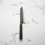The Bunka knife, a versatile and traditional Japanese kitchen tool, features a distinctive, angular tip and a wide blade. It's designed for precision tasks like slicing, dicing, and chopping. Ideal for handling vegetables, meat, and fish, the Bunka is a multifunctional knife celebrated for its utility and unique aesthetic.