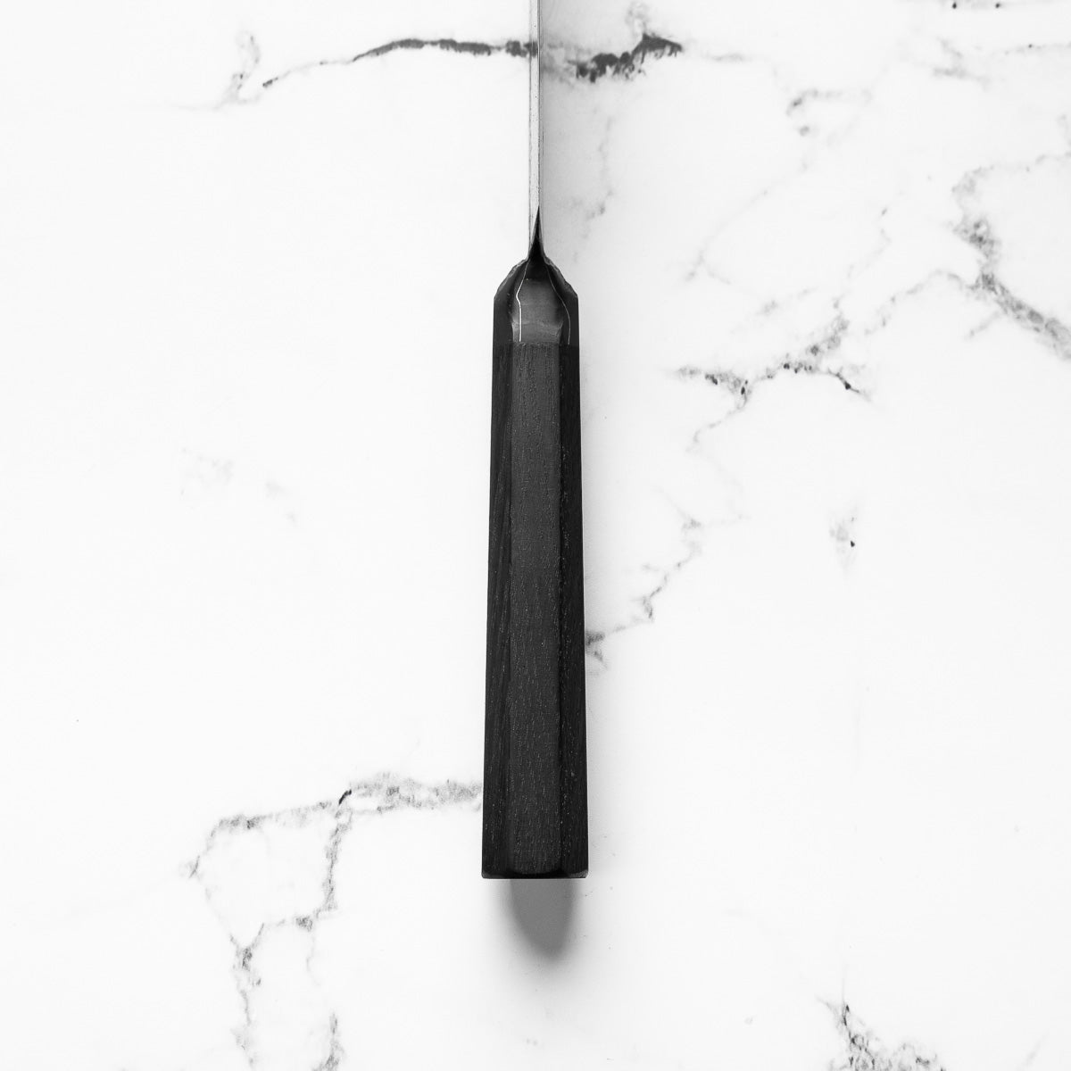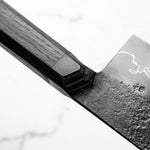 The Bunka knife, a versatile and traditional Japanese kitchen tool, features a distinctive, angular tip and a wide blade. It's designed for precision tasks like slicing, dicing, and chopping. Ideal for handling vegetables, meat, and fish, the Bunka is a multifunctional knife celebrated for its utility and unique aesthetic.