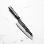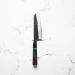 The Bunka knife, a versatile and traditional Japanese kitchen tool, features a distinctive, angular tip and a wide blade. It's designed for precision tasks like slicing, dicing, and chopping. Ideal for handling vegetables, meat, and fish, the Bunka is a multifunctional knife celebrated for its utility and unique aesthetic.