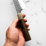 The Bunka knife, a versatile and traditional Japanese kitchen tool, features a distinctive, angular tip and a wide blade. It's designed for precision tasks like slicing, dicing, and chopping. Ideal for handling vegetables, meat, and fish, the Bunka is a multifunctional knife celebrated for its utility and unique aesthetic.