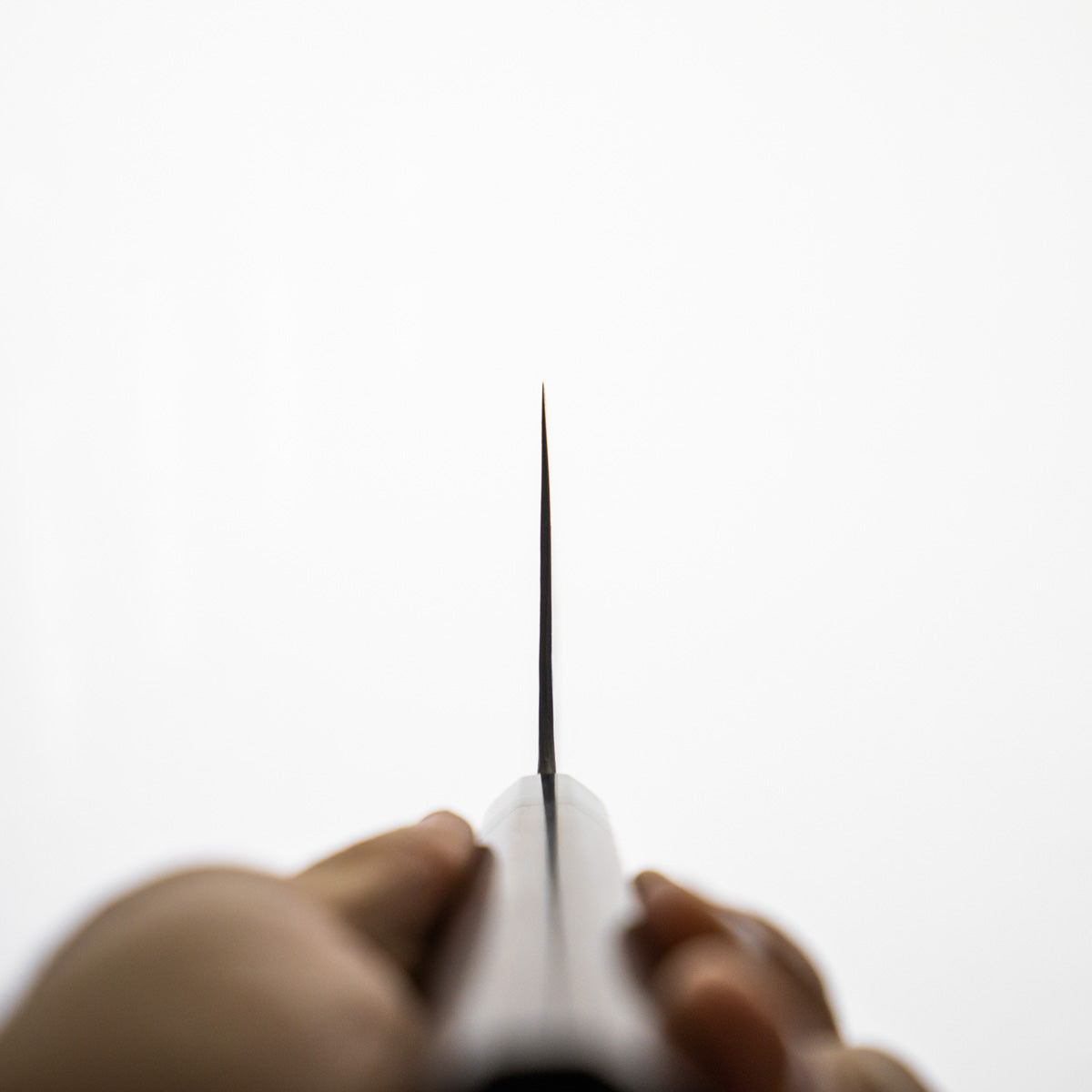 This knife is made from a high-carbon steel and as such, will require a little more care than a regular off-the-shelf knife. It must be dried shortly after use, as prolonged exposure to moisture can cause rust spots to appear. A very light coat of oil during storage also helps to prevent rust spots. A patina (colouration and seasoning of the steel) will occur with use.