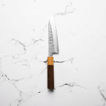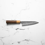 The Petty knife, a quintessential tool in Japanese cuisine, is a smaller utility knife used for precise, delicate tasks. Often considered a smaller sibling to the chef's knife, it excels in hand-held tasks like peeling, trimming, and intricate cutting. Its versatility makes it an essential for detailed culinary work.