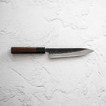 The Petty knife, a quintessential tool in Japanese cuisine, is a smaller utility knife used for precise, delicate tasks. Often considered a smaller sibling to the chef's knife, it excels in hand-held tasks like peeling, trimming, and intricate cutting. Its versatility makes it an essential for detailed culinary work.