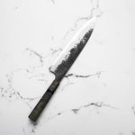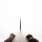Based in the famed knifemaking city of Sanjo, Niigata, Naoki Mazaki is a talented young artisan whose work is defined by meticulous attention to detail and complete dedication to traditional craftsmanship. Working entirely by himself—from forging and shaping, to sharpening and fitting handles—Mazaki specializes in knives forged from Shirogami #2 steel with iron cladding.