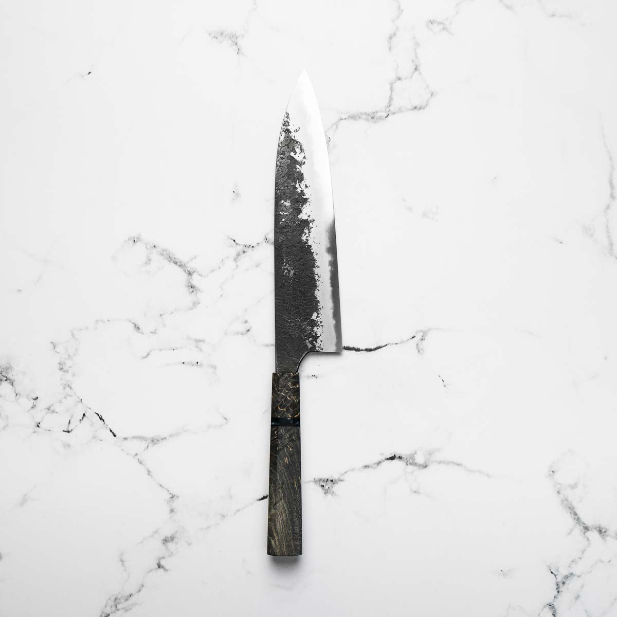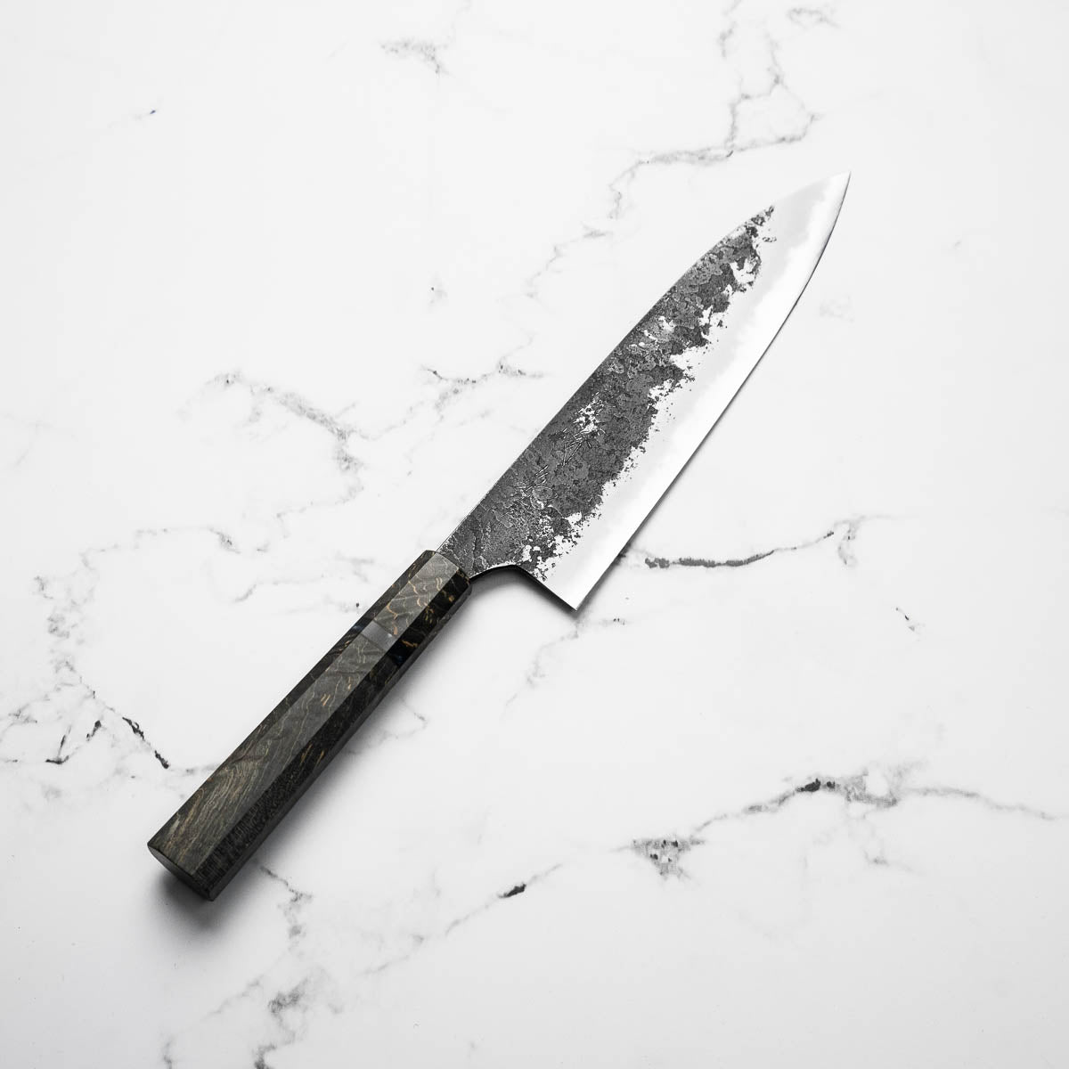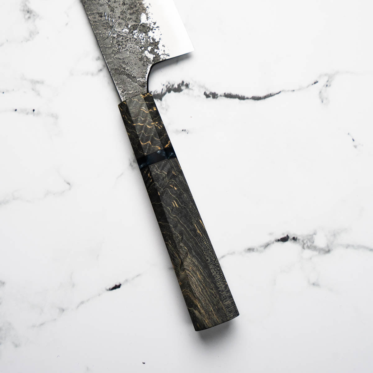 His knives are celebrated for their exceptional performance, refined finish, and distinctive geometry, meticulously honed by hand on whetstones. Due to the careful, solo nature of his craft, Mazaki’s knives have become highly sought-after, known as much for their scarcity as their extraordinary quality.