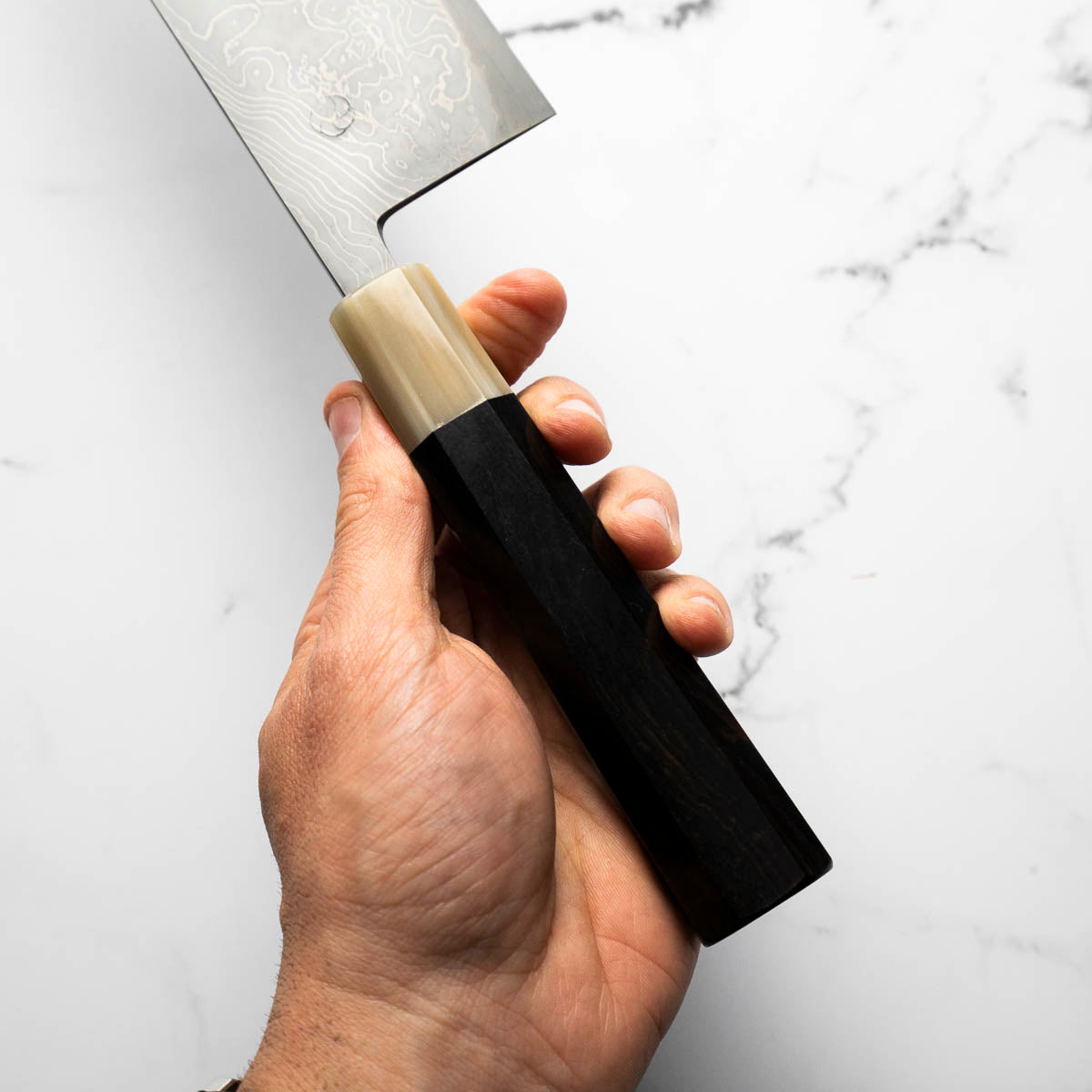 Miyazaki-san began his journey straight out of high school, apprenticing for five years under the respected Ooba-san in Fukuoka. After mastering his fundamentals, he returned to his island home to establish his own forge — where he now produces knives in the traditional Hakata style, known for their tall profiles and distinctive blade shape.
