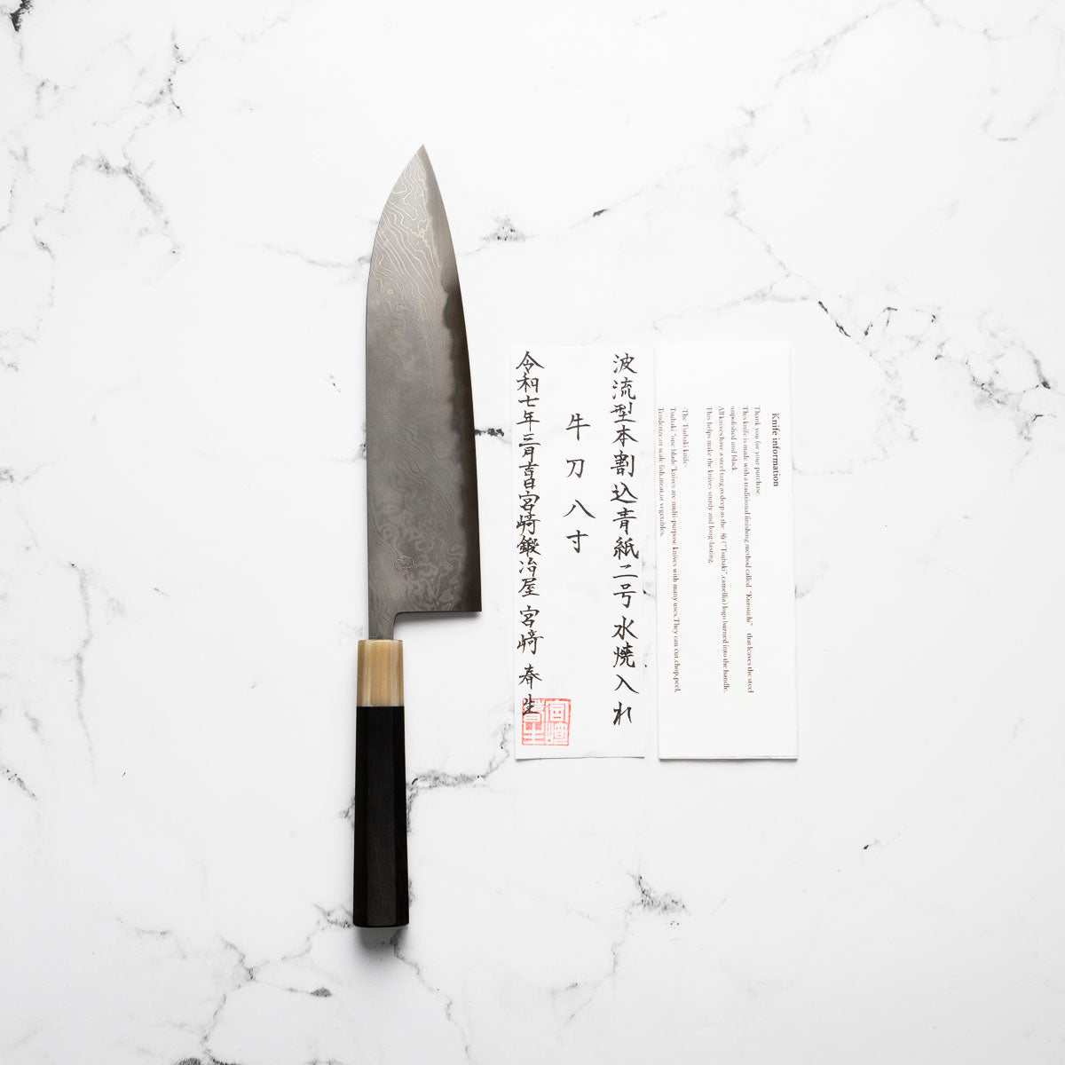 Miyazaki Hineri Blue 2 Damascus Gyuto 240mm