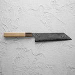 The Kiritsuke knife, a symbol of expertise in Japanese cuisine, is traditionally used by executive chefs. This multi-purpose knife combines features of a slicer and a vegetable knife, with its angled tip and long blade. It excels in precise slicing, chopping, and julienning, making it a prestigious and versatile tool.