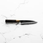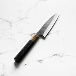 The Petty knife, a quintessential tool in Japanese cuisine, is a smaller utility knife used for precise, delicate tasks. Often considered a smaller sibling to the chef's knife, it excels in hand-held tasks like peeling, trimming, and intricate cutting. Its versatility makes it an essential for detailed culinary work.