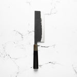 The Nakiri knife, revered in Japanese culinary traditions, is engineered for exceptional vegetable cutting. Featuring a distinct, straight-edged, and rectangular blade, it excels in creating uniform, precise cuts and aesthetic presentation. Its technical design ensures efficiency and precision, making it a valuable tool for both professional chefs and home cooks.