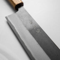 Japanese Blue Steel #2, or "Aogami" #2, is a revered high-carbon steel alloyed with low amounts of chromium and tungsten. It strikes an excellent balance between durability, edge retention, and ease of sharpening. Slightly more ductile than Blue #1, it's widely used in crafting traditional Japanese knives, beloved by chefs for its resilience and sharpness, albeit is slightly softer than Blue 1.