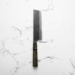 The Nakiri knife, revered in Japanese culinary traditions, is engineered for exceptional vegetable cutting. Featuring a distinct, straight-edged, and rectangular blade, it excels in creating uniform, precise cuts and aesthetic presentation. Its technical design ensures efficiency and precision, making it a valuable tool for both professional chefs and home cooks.