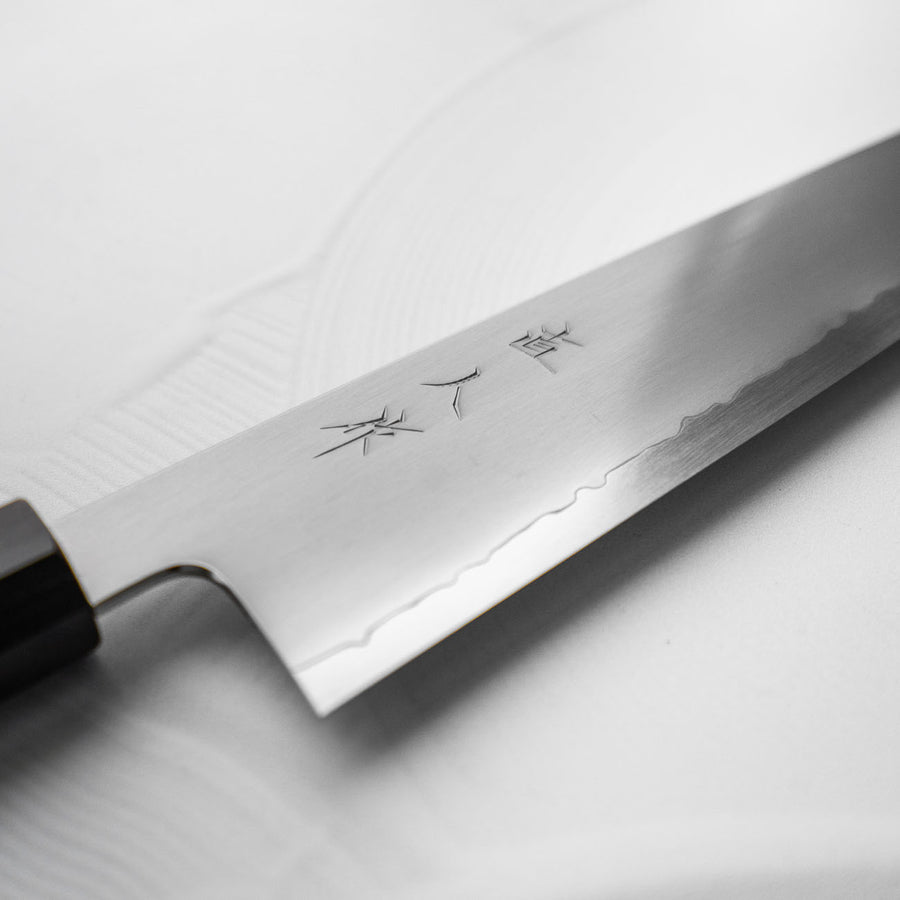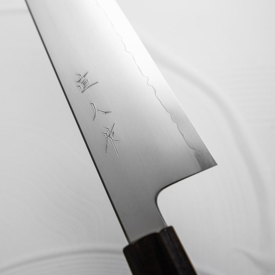 Naohito Myojin is a fast-rising sharpener working out of Kochi prefecture. His work is now in such high demand that long wait times are now the norm. He is the sharpener behind the Tetsujin line and the 'Fujiyama' line by Konosuke.