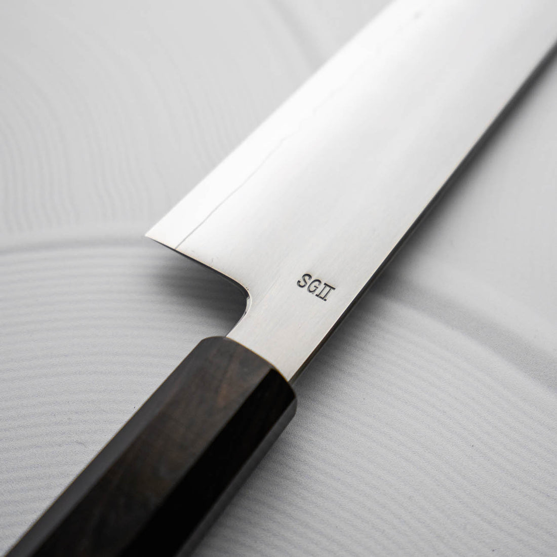 Japanese SG2, also known as R2 steel, is a high-end, powdered metallurgy stainless steel and one of the finest knife-making steels available in Japan. It is a favourite of many for its exceptional hardness and edge retention. Its fine, uniform grain structure enables razor-sharp edges, all the while holding an edge for much longer than Carbon steel knives, without needing to be concerned about rust appearing.