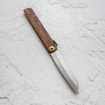 Discover the time-honored tradition of Japanese craftsmanship with our stunning Higonokami knives. The Higonokami, a traditional Japanese pocket knife, features a unique friction-folding design and a razor-sharp blade that has been masterfully forged using ancient techniques. These knives are not only functional tools but also true works of art, showcasing the beauty and skill of Japanese blade smithing.