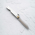 Discover the time-honored tradition of Japanese craftsmanship with our stunning Higonokami knives. The Higonokami, a traditional Japanese pocket knife, features a unique friction-folding design and a razor-sharp blade that has been masterfully forged using ancient techniques. These knives are not only functional tools but also true works of art, showcasing the beauty and skill of Japanese blade smithing.