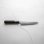 The Petty knife, a quintessential tool in Japanese cuisine, is a smaller utility knife used for precise, delicate tasks. Often considered a smaller sibling to the chef's knife, it excels in hand-held tasks like peeling, trimming, and intricate cutting. Its versatility makes it an essential for detailed culinary work.