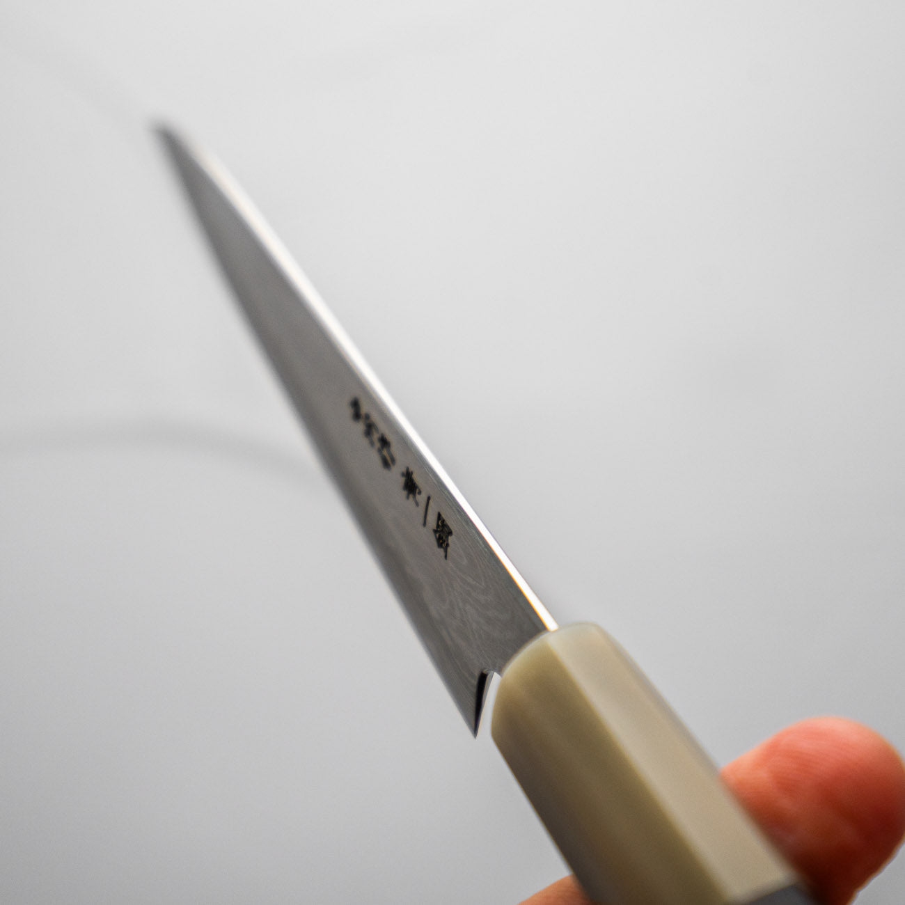 Nakagawa Satoshi (Hatsukokoro) Blue 1 Damascus Petty 150mm - African Blackwood