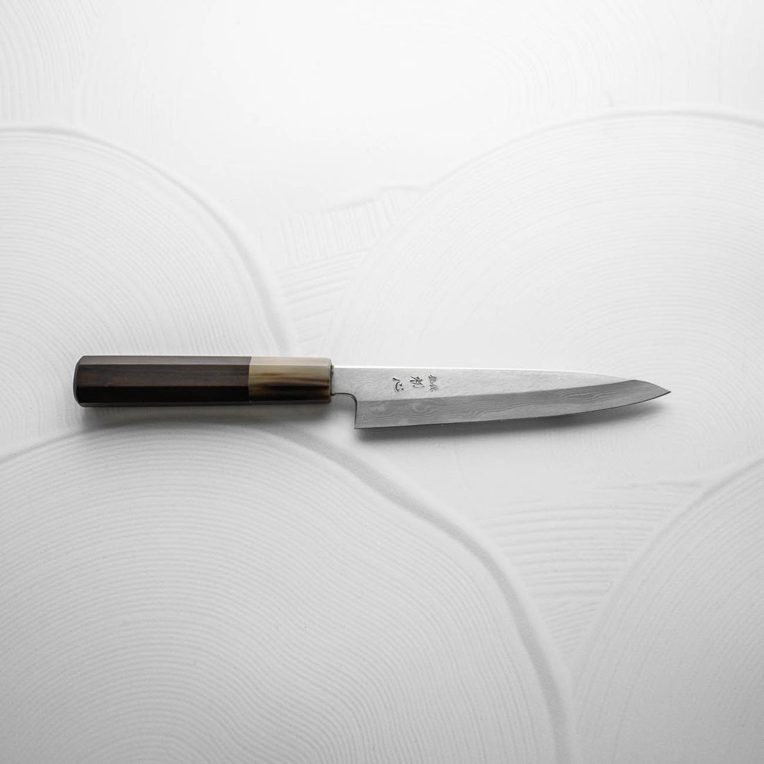 Nakagawa Satoshi (Hatsukokoro) Blue 1 Damascus Petty 150mm - African Blackwood