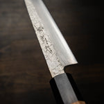 Japanese Ginsan steel, also known as Silver-3 or G3, is an underrated high-grade semi-stainless steel loved by many for being in the ‘goldilocks zone’ of knife steels. It holds a very respectable edge, but is effortless to sharpen. It is considered the semi-stainless version of White 2. It is the knife steel of choice for many home cooks and professional chefs alike.