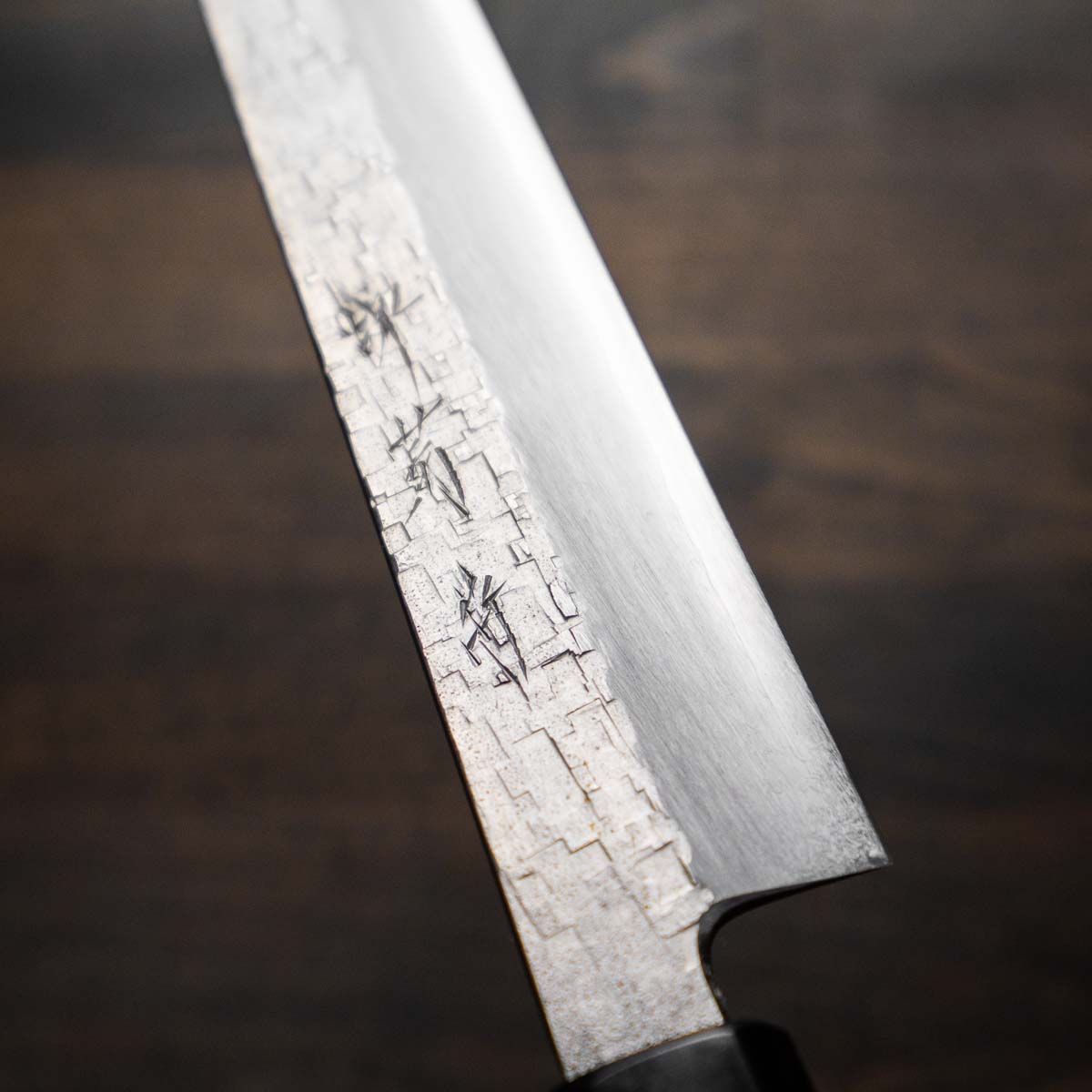 Nigara Hamono are truly some of the most experienced knifemakers in Japan. Now on their 8th generation of blacksmiths, they are masters at stainless damascus forging and heat treatment. The Anmon Damascus we have available have a matte finish and are polished underneath, resulting in a brilliant visual contrast.