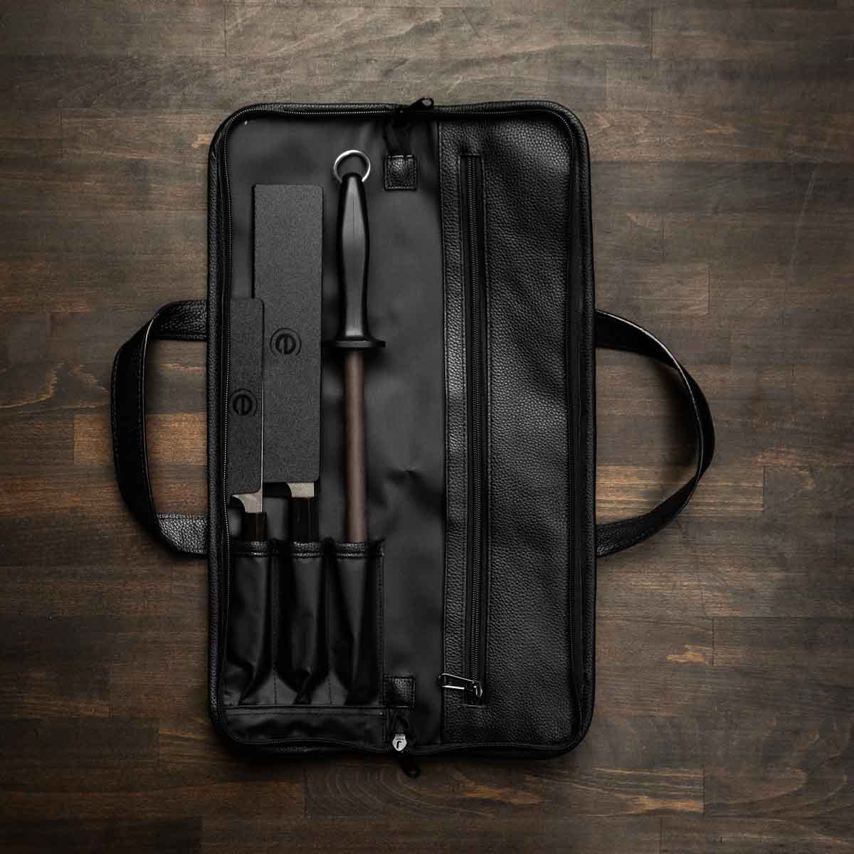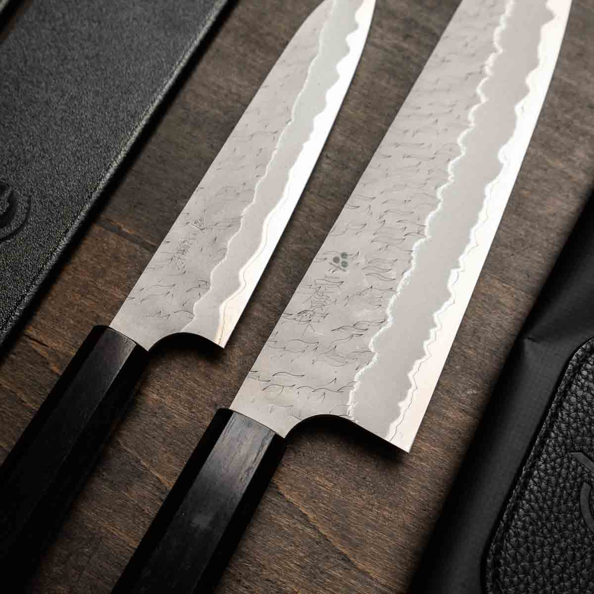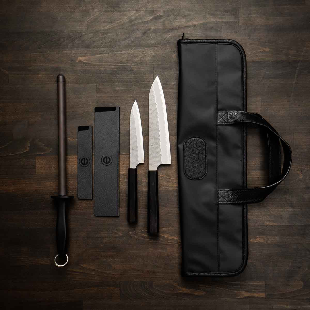 Nigara Hamono Blue Super Tsuchime 2 Knife Set with Porter Knife Bag - Ebony
