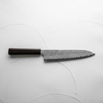 Nigara Hamono are truly some of the most experienced knifemakers in Japan. Now on their 8th generation of blacksmiths, they are masters at stainless damascus forging and heat treatment. The Anmon Damascus we have available have a matte finish and are polished underneath, resulting in a brilliant visual contrast.