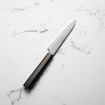 The Petty knife, a quintessential tool in Japanese cuisine, is a smaller utility knife used for precise, delicate tasks. Often considered a smaller sibling to the chef's knife, it excels in hand-held tasks like peeling, trimming, and intricate cutting. Its versatility makes it an essential for detailed culinary work.