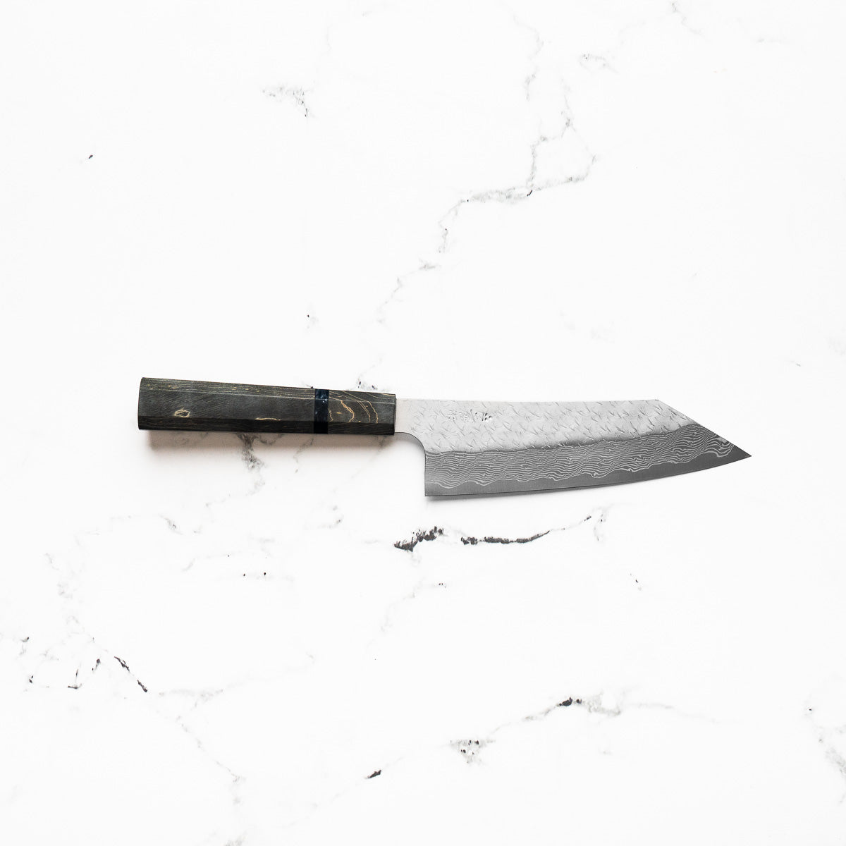 The Bunka knife, a versatile and traditional Japanese kitchen tool, features a distinctive, angular tip and a wide blade. It's designed for precision tasks like slicing, dicing, and chopping. Ideal for handling vegetables, meat, and fish, the Bunka is a multifunctional knife celebrated for its utility and unique aesthetic.