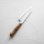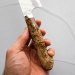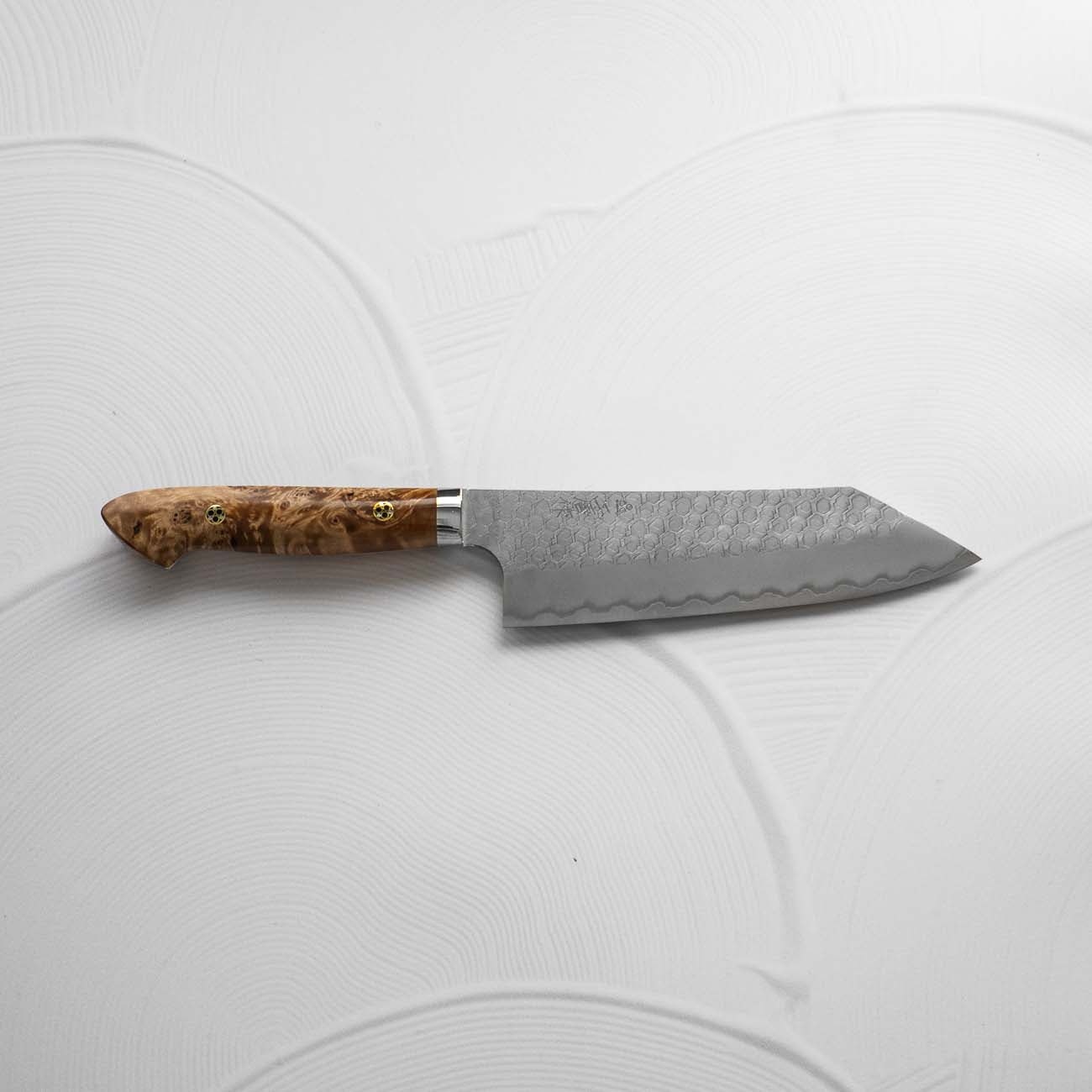 The Bunka knife, a versatile and traditional Japanese kitchen tool, features a distinctive, angular tip and a wide blade. It's designed for precision tasks like slicing, dicing, and chopping. Ideal for handling vegetables, meat, and fish, the Bunka is a multifunctional knife celebrated for its utility and unique aesthetic.