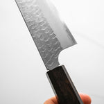Nigara Hamono are truly some of the most experienced knifemakers in Japan. Now on their 8th generation of blacksmiths, they are masters at stainless damascus forging and heat treatment. The Anmon Damascus we have available have a matte finish and are polished underneath, resulting in a brilliant visual contrast.